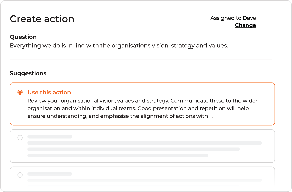 It’s no good putting insights into silos. You need to easily flow them out across teams and into your existing planning, reporting and action management processes. And it would help if you kept your survey setup light touch.